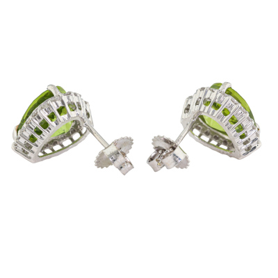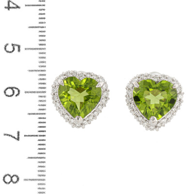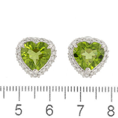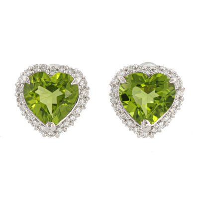 Peridot and Diamond earrings with heart shape Natural Peridot totalling 6.76ct and round Natural Diamonds totalling 0.64ct (Estimated grading: G-H SI). 18ct white gold. Weight: 6.2g. (Pre-owned)
