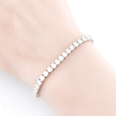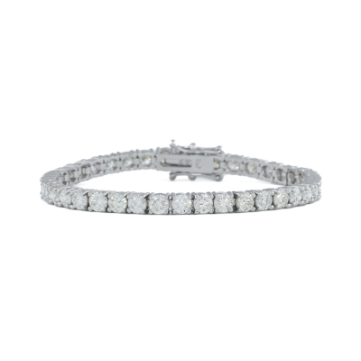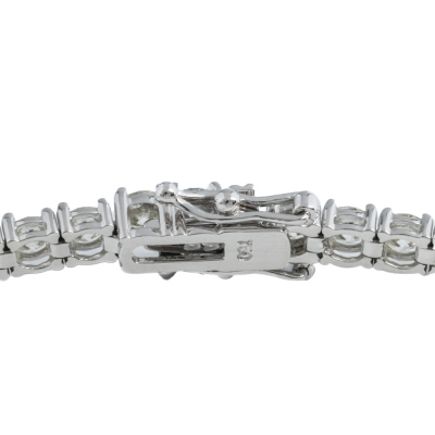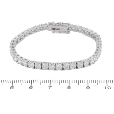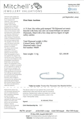 Diamond tennis bracelet with 41 round Natural Diamonds totalling 6.89ct. (Estimated grading: HIJ VS). 18ct white gold. Length: 15.5cm. Weight: 11.4g. With Valuation Certificate #421427. (New)