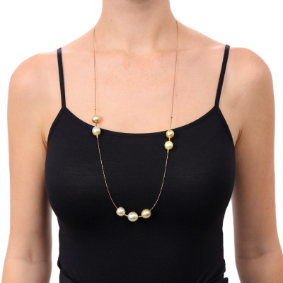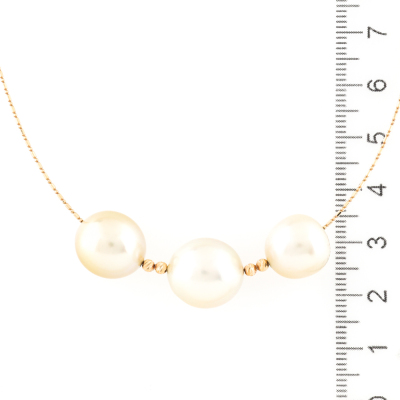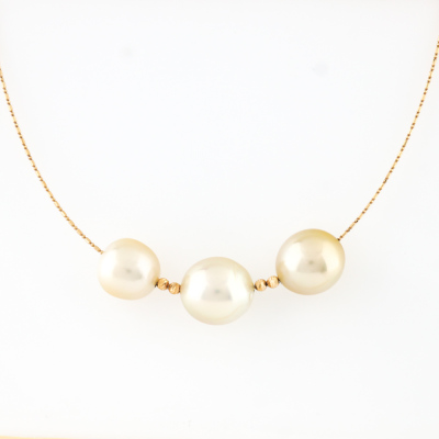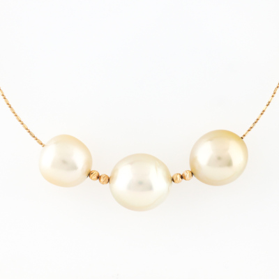 Pearl necklace with 7 mixed shape Golden South Sea Pearls from 13.3mm - 11.3mm. 18ct yellow gold. Length: 81cm. Weight: 22.1g. (Pre-owned)