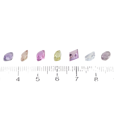 A loose parcel of 7 mixed shape and colour unheated Natural Sapphires totalling 7.29ct (all with RGL Gemmological Reports dated Nov/Dec 2021). (As New)
