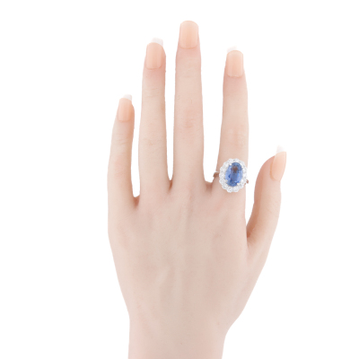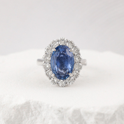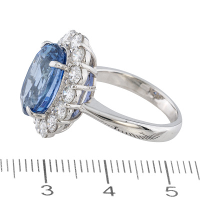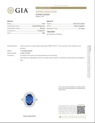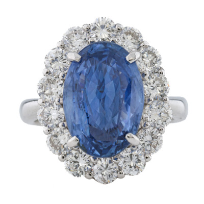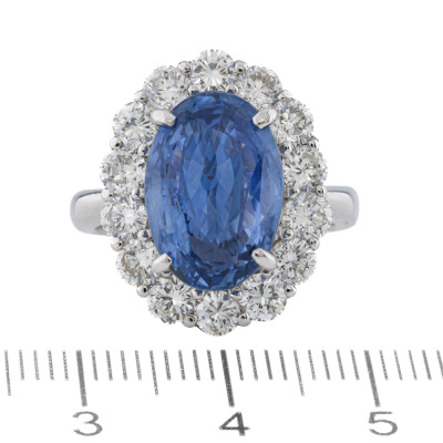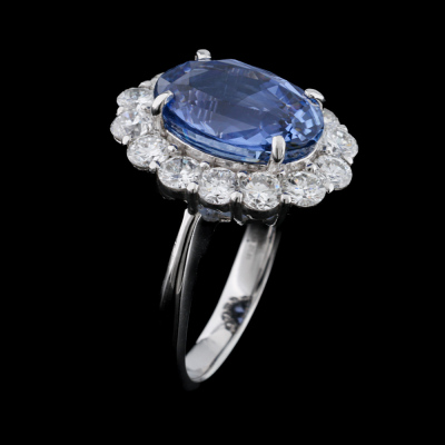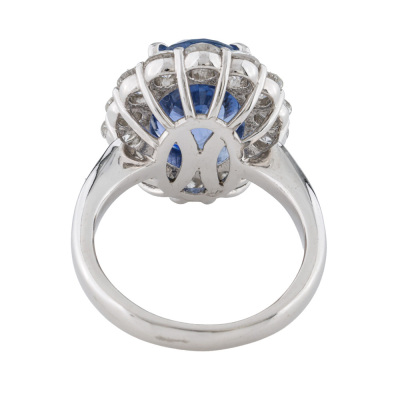 Sapphire and Diamond ring with oval shape unheated Sri Lankan Natural Blue Sapphire of 7.59ct and round Natural Diamonds totalling 1.91ct (Estimated grading: G-H VS). Platinum - 900. Band width: 2.8mm With GIA Report #2454848408.