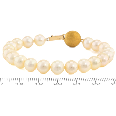 Pearl bracelet with 20 Akoya Pearls of 7.5mm. 18ct yellow gold clasp. Length: 17cm. Weight: 14.7g. (Pre-owned)