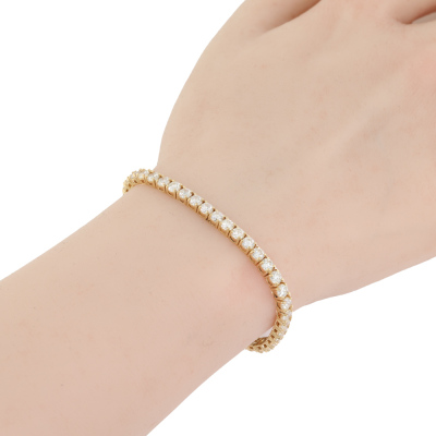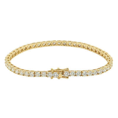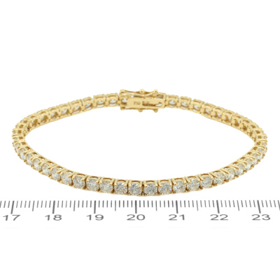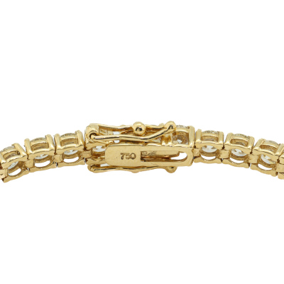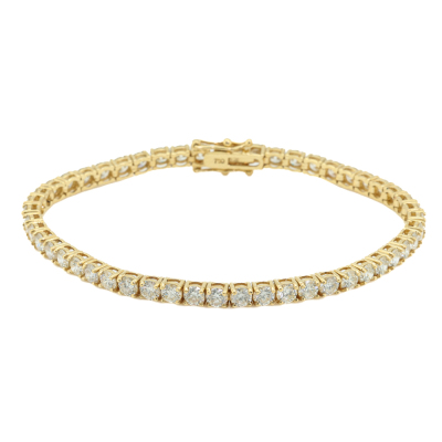 Diamond tennis bracelet with 50 round Natural Diamonds totalling 7.62ct (Estimated grading: H-I VS). 18ct yellow gold. Length: 18cm. Weight: 12.3g. With Valuation Certificate #421968.