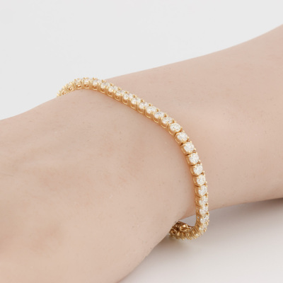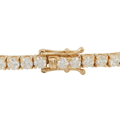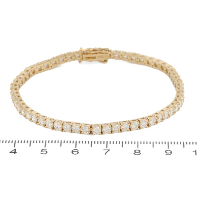 Diamond tennis bracelet with 50 round Natural Diamonds totalling 7.62ct (Estimated grading: I-J SI). 18ct yellow gold. Length: 18cm. Weight: 11.9g. With Valuation Certificate #420974. (New)