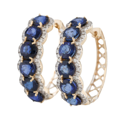 7.76ct Blue Sapphire & Diamond Hoop Earrings