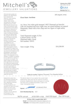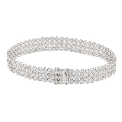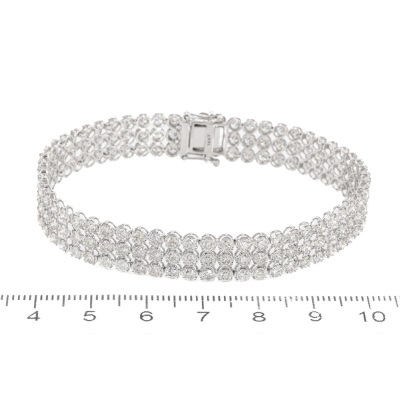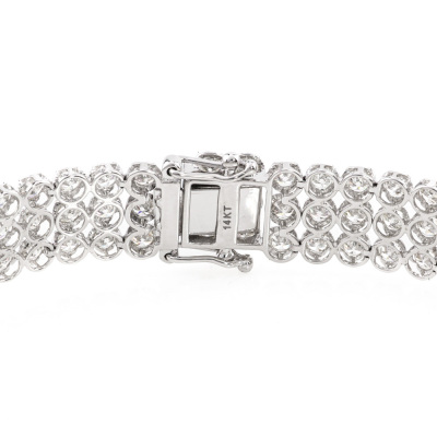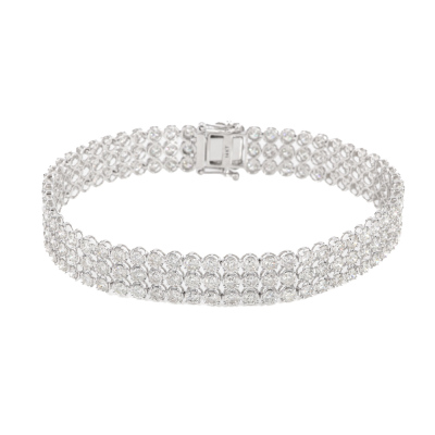 Diamond 3 row tennis bracelet with 168 round Natural Diamonds totalling 8.53ct (Estimated grading: H-I SI). 14ct white gold. Length: 18cm. Width: 9.6mm. Weight: 10.6g. With Valuation Certificate #421149. (New)