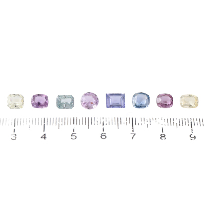 A loose parcel of 8 mixed shape and colour unheated Natural Sapphires totalling 8.61ct (all with RGL Gemmological Reports dated Nov/Dec 2021). (New)