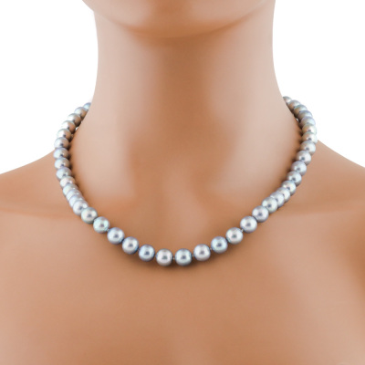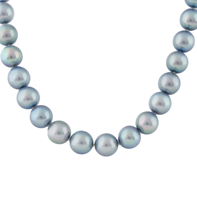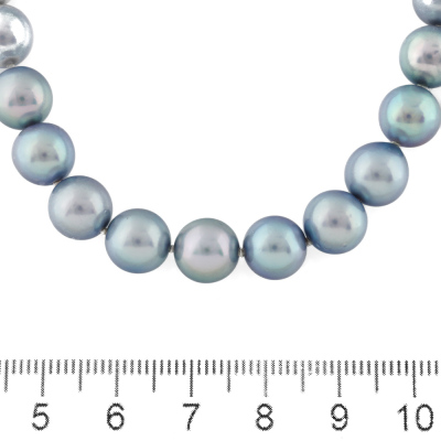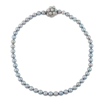 Pearl necklace with 52 light grey Akoya Pearls from approximately 8.9mm - 8.3mm. 14ct white gold clasp set with 7 light grey Akoya Pearls from approximately 6.5mm - 6.2mm. Length: 48.5cm. Weight: 53.5g. (Pre-owned)