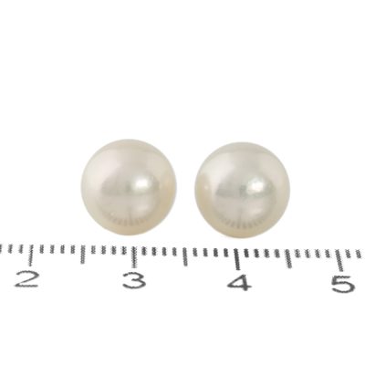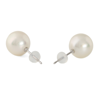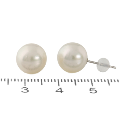 Pearl stud earrings with Akoya Pearls of 9.0mm & 9.1mm. 14ct white gold with silicon backs. Weight: 2.4g. (As New)