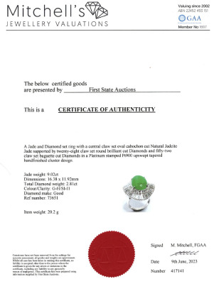 9.02ct Jadeite Jade & 2.81ct Diamond Ring