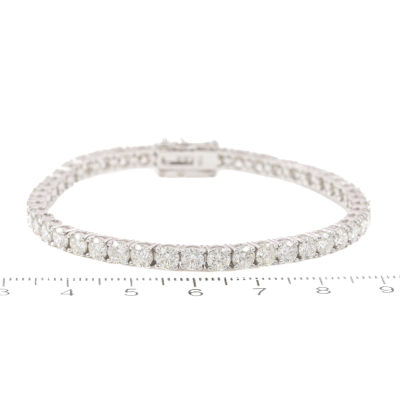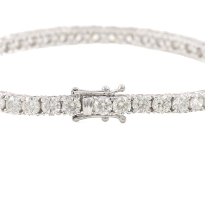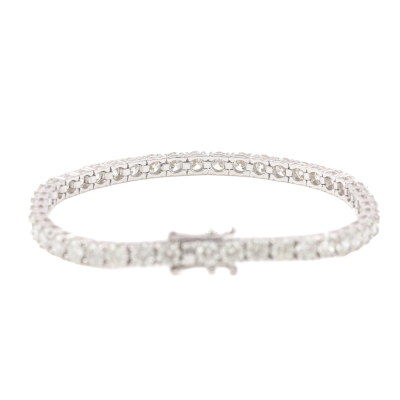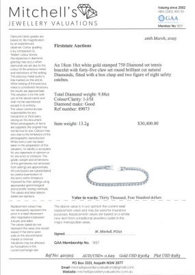 Diamond tennis bracelet with 45 round Natural Diamonds totalling 9.88ct (Estimated grading: I-J SI). 18ct white gold. Length: 18cm. Weight: 13.2g. With Valuation Certificate #420305. (New)