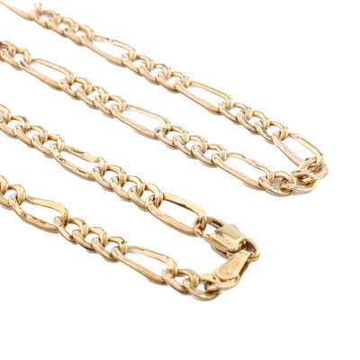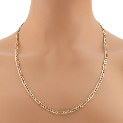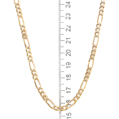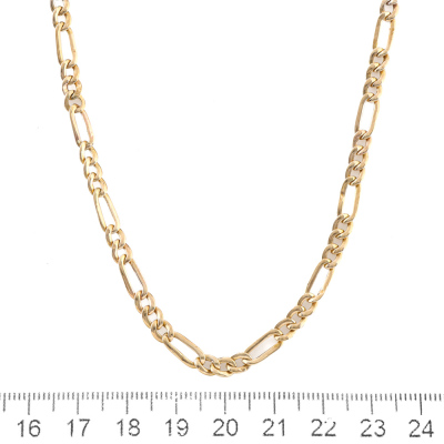 Figaro link chain necklace. 9ct yellow gold. Length: 59.5cm. Width: 4.4mm. Weight: 7.8g. (Pre-owned)