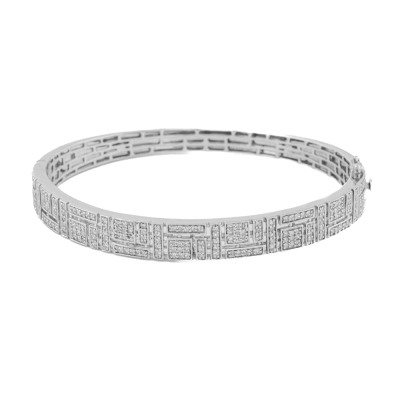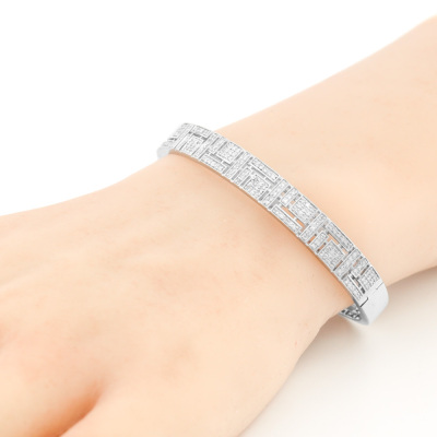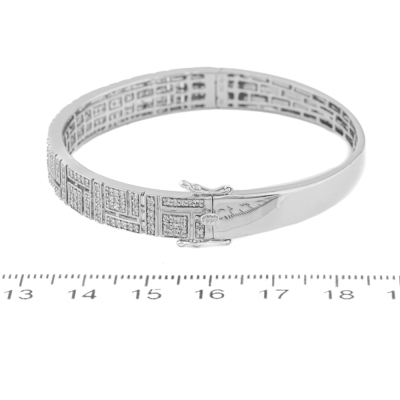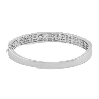 Diamond hinged Oval Bangle with round Natural Diamonds totalling approximately 1.00ct (Estimated grading: H-I SI-P1). 9ct white gold. Oval shape, Inner circumference: 17cm. Width: 7.5mm - 5mm. Weight: 16.2g. (Pre-owned)