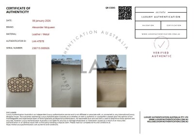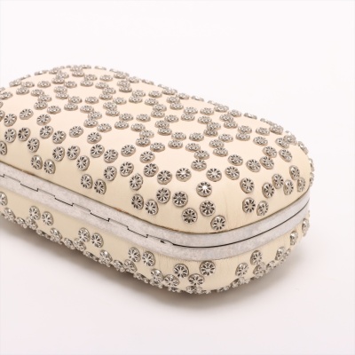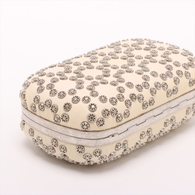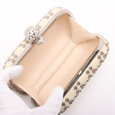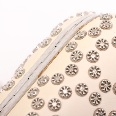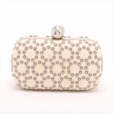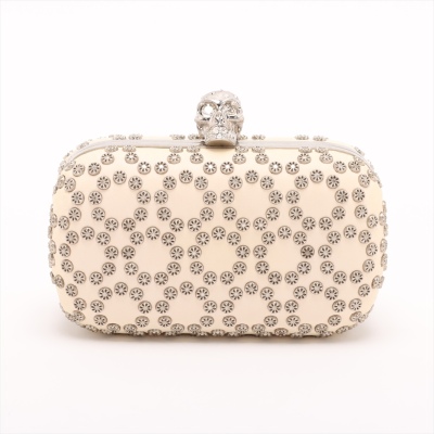Alexander McQueen Skull Box clutch in white leather with silver studs detailing. Featuring an aged silver-toned metal frame and hardware, stud embellishments along the body of the bag, and skull designed clasp closure on top. This opens to a white leather interior. Approximate dimensions: 16cm(L) x 11.5cm(H) x 5cm(D). Accompanied by an Alexander McQueen box. With Luxury Authentication Australia Certificate. (Pre-owned).