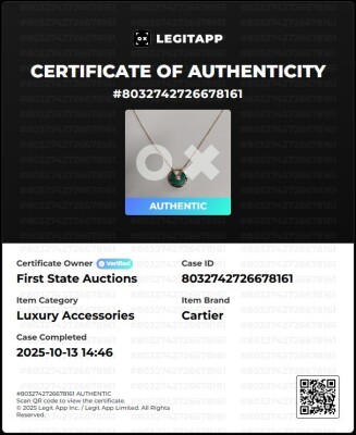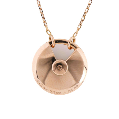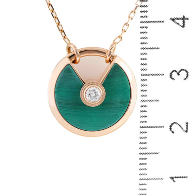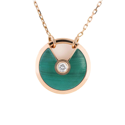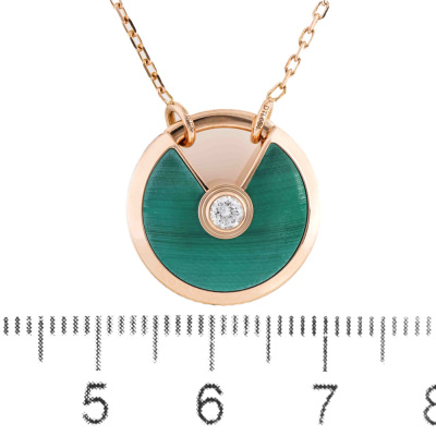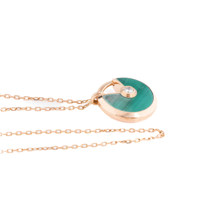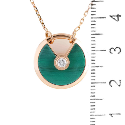 Amulette de Cartier Necklace, SM model with Malachite inlay and round Natural Diamond of approximate 0.09ct. Motif size: 1.7cm. 18ct rose gold with Cartier 18ct rose gold chain. Inner circumference: 60cm. Weight: 10.3g. With Certificate #8032742726678161. (Pre-owned)