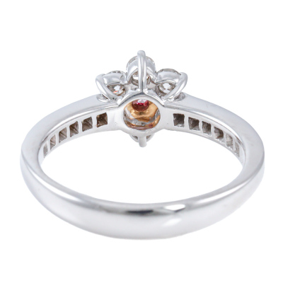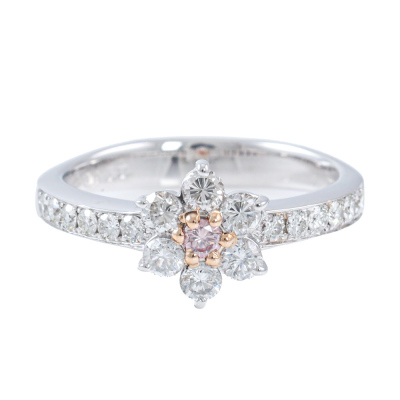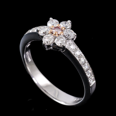 Diamond ring with centre round Argyle Origin Natural Pink Diamond of 0.05ct (With GSL Report graded as Natural Fancy Pink SI2 # AA71266/1. Origin: Argyle Deposit, Western Australian) and round Natural white Diamonds totalling 0.62ct (Estimated grading: HIJ VS-SI). Platinum - 900. Ring size L1/2. Band width: 3.1mm-2.5mm. Weight: 5.0g. (Pre-owned)