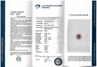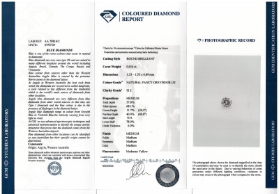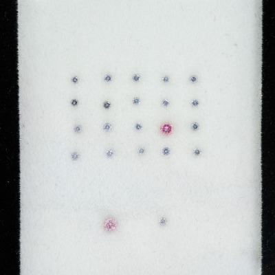A parcel of 22 round Argyle Origin Natural Diamonds with 2 round brilliant cut Argyle Origin Pink Natural Diamond totalling 0.12ct (1 x 0.057ct with GSL Report graded as Natural Fancy Intense Purplish Pink #AA70814/1, Origin: Argyle Deposit, Western Australian) & 20 round Argyle Origin Blue Natural Diamonds totalling 0.28ct (1 x 0.014ct With GSL Report graded as Natural Fancy Greyish Blue SI2 #AA70814/2, Origin: Argyle Deposit, Western Australia). (As New)