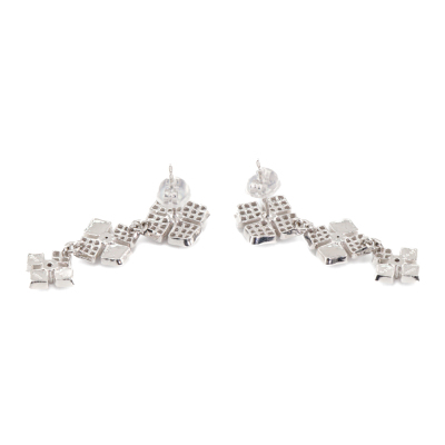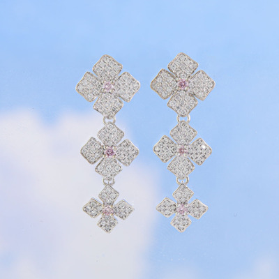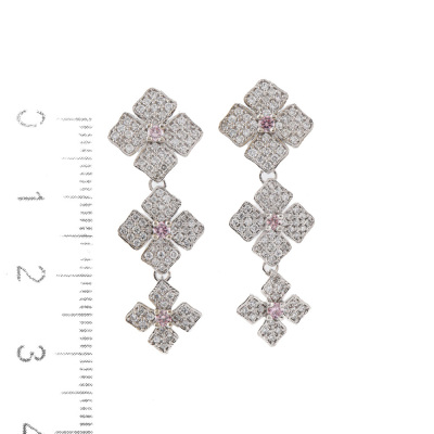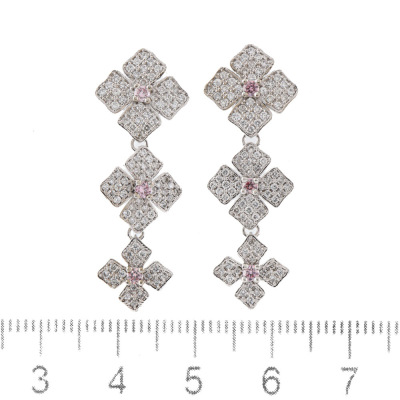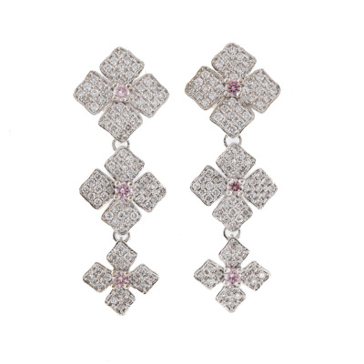 Diamond dangle earrings with 6 round Natural Argyle Origin Pink Diamonds totalling 0.20ct (one Diamond of 0.032ct with GSL Report graded as Fancy Pink P1 #AA70452/2. Origin: Argyle Deposit, Western Australian) and round Natural Diamonds totalling 0.94ct (Estimated grading: G-H VS). 18ct white gold with 18ct white gold & silicon backs. Weight: 6.3g. (Pre-owned)