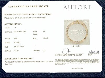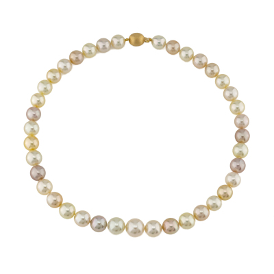 Autore pearl strand necklace with 39 graduated multi-shade Light Golden South Sea Pearls of 13.53mm - 10.47mm. With matte finish 18ct yellow gold Autore clasp. Length: 47.5cm With Autore Certificate & box.