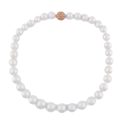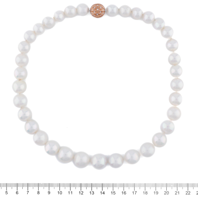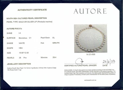 Autore Pearl Necklace with 35 graduated button shape South Sea Pearls of 15.9mm - 12.0mm. 18ct rose gold Autore clasp set with round Natural Diamonds 0.56ct (Estimated grading: H SI). Length: 46.5cm. Weight: 117.5g. With Autore Certificate #N-121-003. (As New)