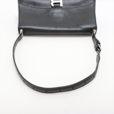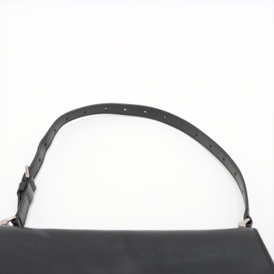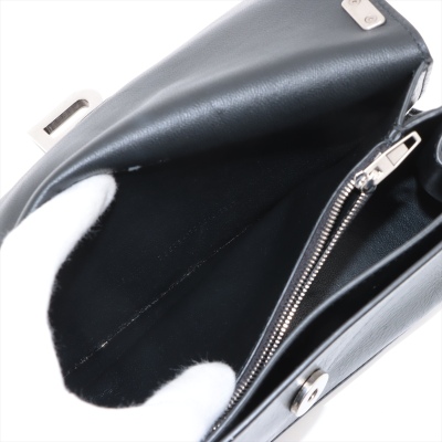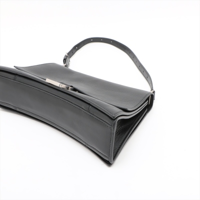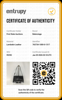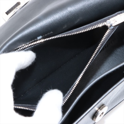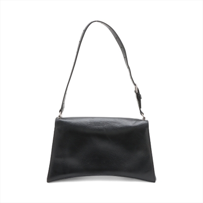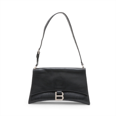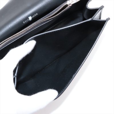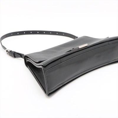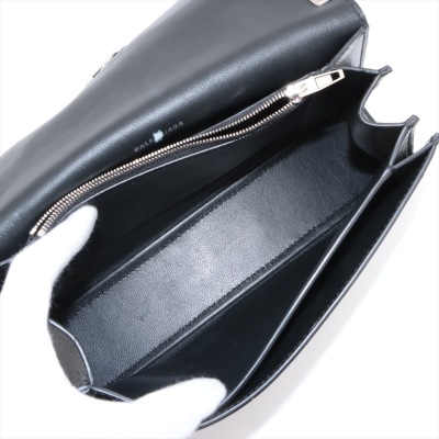 Balenciaga small Crush Sling bag in black soft crinkled calfskin leather. Featuring silver-toned hardware, a leather shoulder strap, and a curve shape base. The frontal flap with B logo detailed magnetic snap closure opens to leather-lined interior with three compartments, a zip pocket, and one slip pocket. Approx dimensions: 25.5cm(Base-L) x 14cm(H) x 7.5cm(D), and 21.5cm shoulder strap drop, adjustable. Accompanied by a cleaning cloth and information book. With Entrupy Certificate of Authenticity. (Pre-owned)