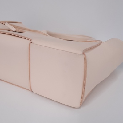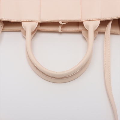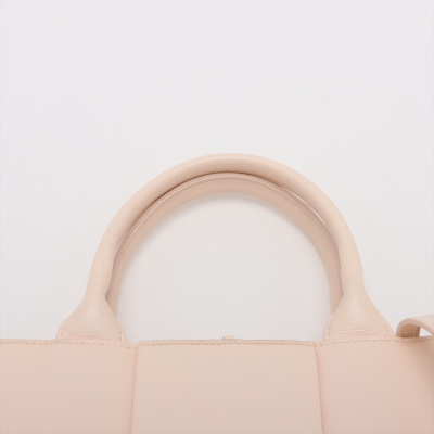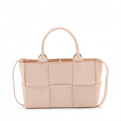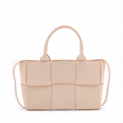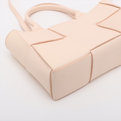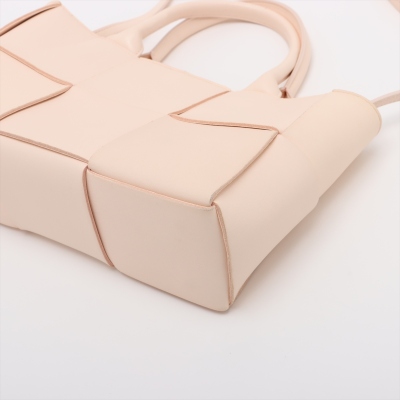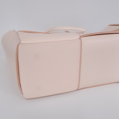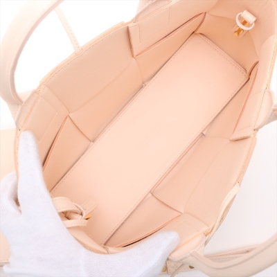 Bottega Veneta Mini Arco tote bag in Maxi Intreccio light beige lambskin leather. Featuring gold-toned hardware, dual leather top handles, and a detachable interior zipped pouch. The top with leather string closure opens to a tonal leather interior. Approximate dimensions: 25cm(Base-L) x 16cm(H) x 8.5cm(D), handle drop 11cm and 29cm detachable & adjustable leather shoulder strap drop. Accompanied by a Bottega Veneta dustbag. With Entrupy Certificate of Authenticity.