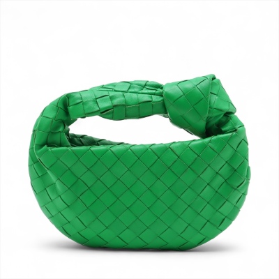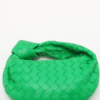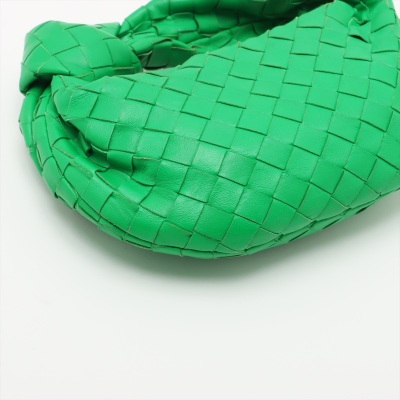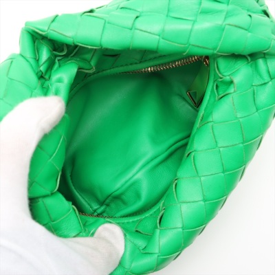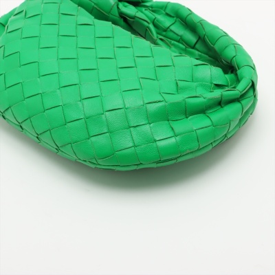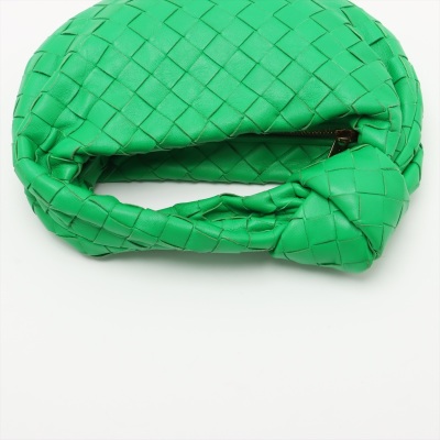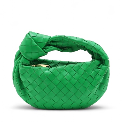 Bottega Veneta mini Jodi in green Intrecciato Nappa leather. Featuring gold-toned hardware, a matching handle with a knot detail. The zipper closure opens to a green smooth leather interior. Approximate dimensions: 23cm(L) x 13cm(H) x 2cm(D), handle drop 8cm. Accompanied by Bottega Veneta dustbag. With Entrupy Certificate of Authenticity.