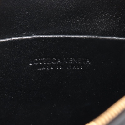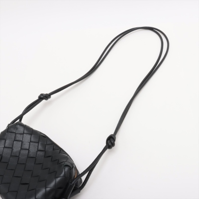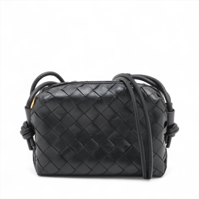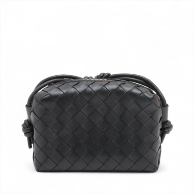 Bottega Veneta mini Loop Camera bag in Intrecciato black Nappa lambskin leather. Featuring gold-tone hardware, a crossbody shoulder strap. The top zipper opens to a matching black leather interior with a patch pocket. Approximate dimensions: 17cm(L) x 12cm(H) x 6.5m(D), 50cm leather strap drop. With Entrupy Certificate of Authenticity. (Pre-owned)