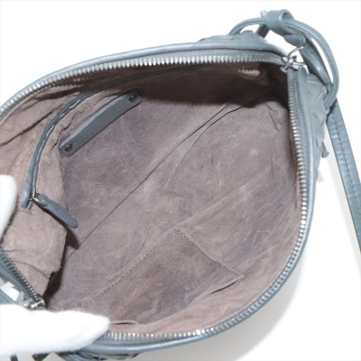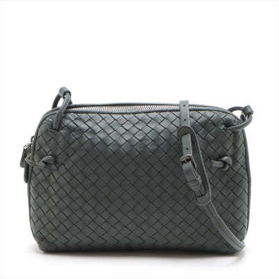 Bottega Veneta Nodini crossbody bag in grey, intrecciato Nappa leather. Featuring metal-tone hardware, knot detailing. The top zip opens to an brown microfibre lining interior with zip and patch pockets. Approximate dimensions: 25cm(W) x 17cm(H) x 4.5cm(D), 60cm shoulder drop, adjustable. With Entrupy Certificate of Authenticity. (Pre-owned)
