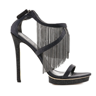 Brian Atwood Cassiane Fringe 135 Suede. Size 9. Colour: Black. Heel Height: 135mm. Material: Suede. Made in China. With Brian Atwood box. With Brian Atwood protective bag. With additional heel caps. (Pre-owned)*