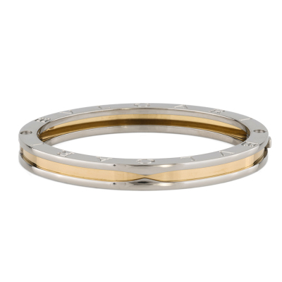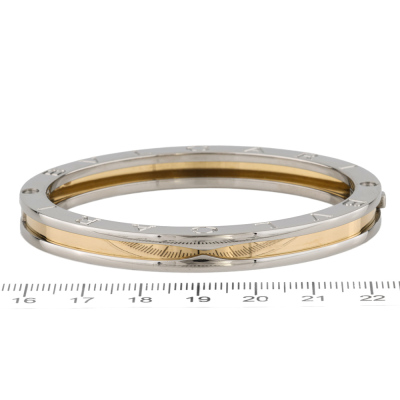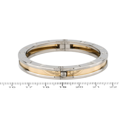 Bvlgari B.Zero1 bracelet. 18ct yellow gold and stainless steel. Made in Italy. Oval hinge bracelet, inner circumference: 16.5cm. Weight: 26.4g.