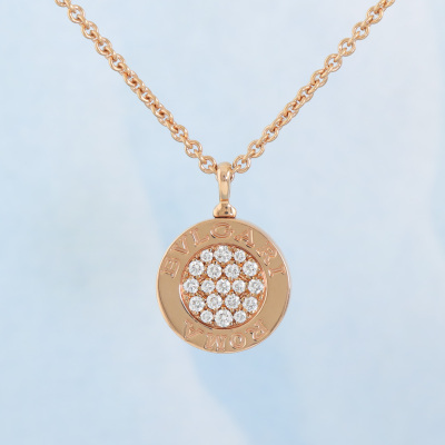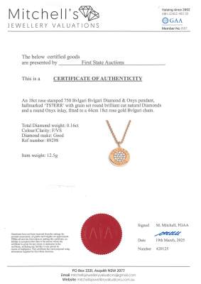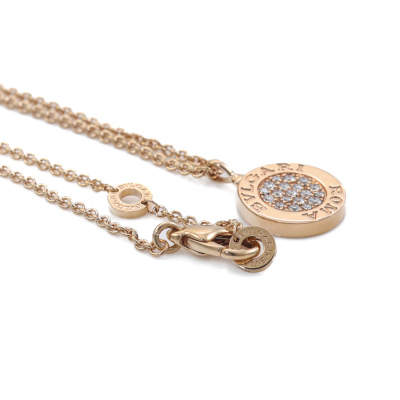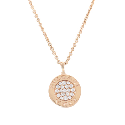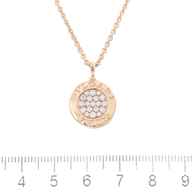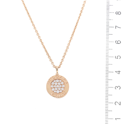 Bvlgari Bvlgari Diamond and onyx necklace with pave set round Natural round Diamonds totalling approximately 0.34ct. Motif diameter size: 15.0mm. 18ct rose gold with 18ct rose gold 41.0 cm - 43.0cm adjustable Bvlgari chain. Made in Italy. Weight: 12.5g. With Certificate #420125(Pre-owned)