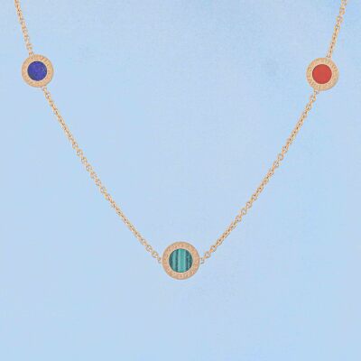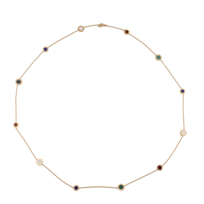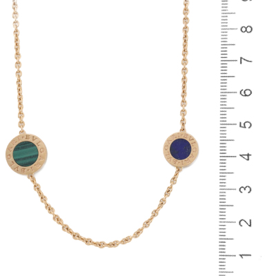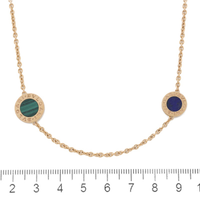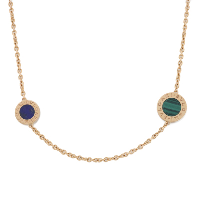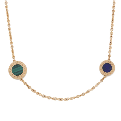 Bvlgari Bvlgari necklace. Featuring 3 Malachite - 12.9mm diameter, 3 Mother of Pearl - 12.9mm diameter, 3 Lapis Lazuli - 10.9mm diameter and 3 Carnelian - 10.9mm diameter elements. 18ct rose gold. Length: 101cm. Weight: 39.8g. Made in Italy. With Bvlgari certificate dated 31/12/2015. (Pre-owned)