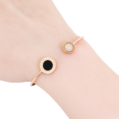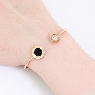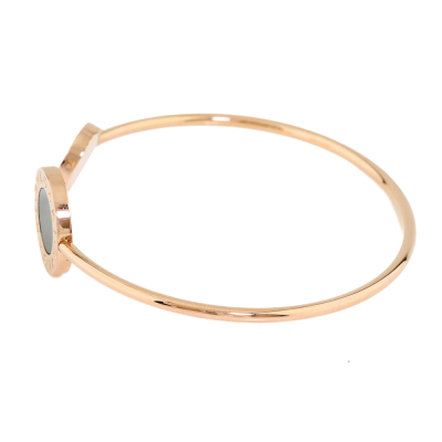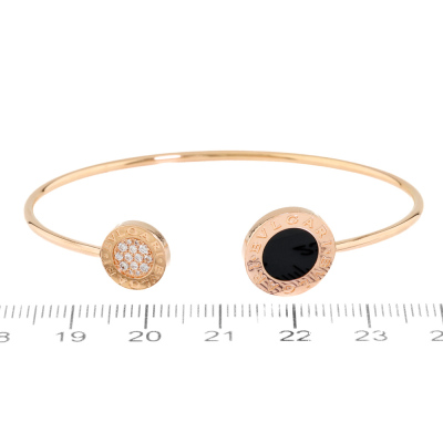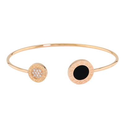 Bvlgari Bvlgari bracelet with 14 round Natural Diamonds totalling 0.10ct and round Onyx inlay. Motif: 13mm & 9.7mm. 18ct rose gold. Band width: 1.7mm. Bvlgari stamped size S. Inner circumference: 15.3cm. Made in Italy. Weight: 7.5g.