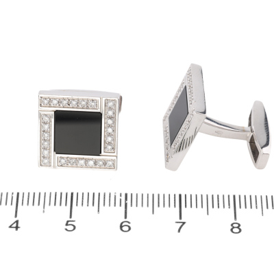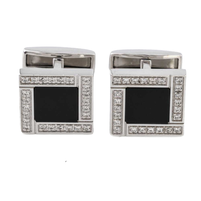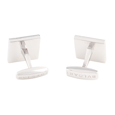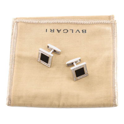 Bvlgari Bvlgari Onyx Cufflinks with Centre Onyx. With 48 brilliant cut diamonds totalling approximately 0.25ct. Cufflink: 15mm x 15mm. 18ct white gold. Made in Italy. Weight: 18.1g. With Bvlgari pouch. With Certificate #3923140265480727. (Pre-owned)