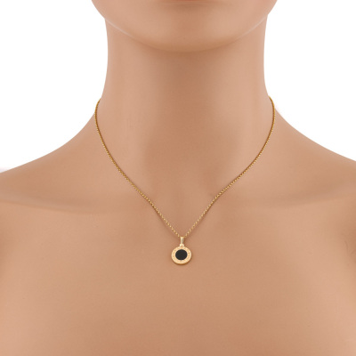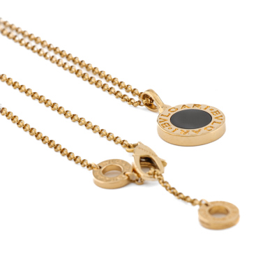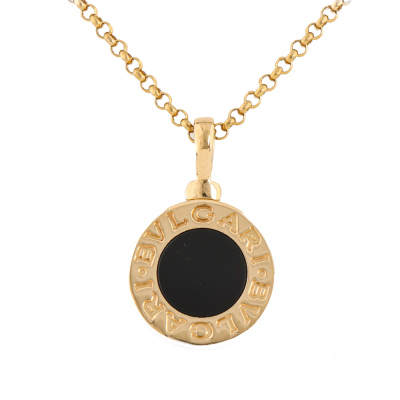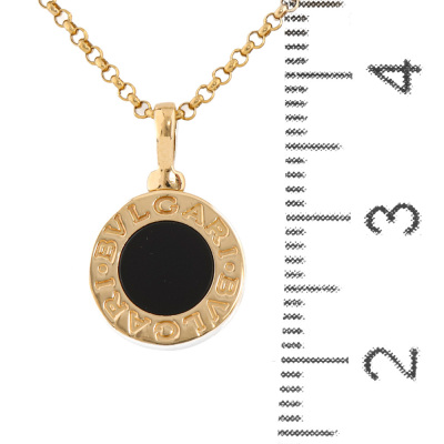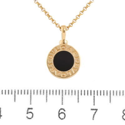 Bvlgari Bvlgari necklace with Onyx. Motif size: 1.1cm. 18ct yellow gold with 42.5cm - 45cm 18ct yellow gold chain. Made in Italy. Weight: 5.5g. (Pre-owned)