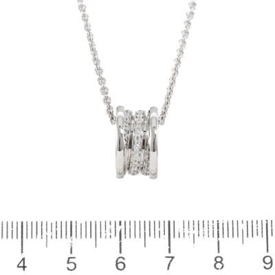Bvlgari B.Zero 1 Diamond pendant with round natural Diamonds totalling 0.20ct (Estimated grading: F VS). 18ct white gold with 41cm chain. Weight: 12.4g. With certificate #3605400282457907. (Pre-owned)
