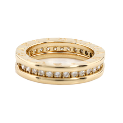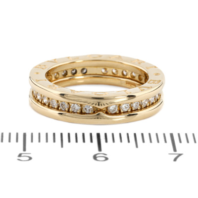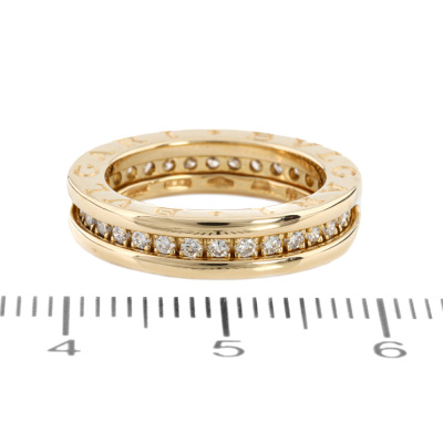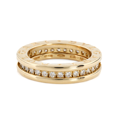 Bvlgari B.Zero1 full hoop Diamond ring with round Natural Diamonds totalling 0.45ct (Estimated grading: F-G VS). 18ct yellow gold. Bvlgari stamped size 46, Measures as Australian Size G - ring resizing is not recommended. Made in Italy. Weight: 5.2g. (Pre-owned)
