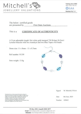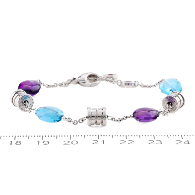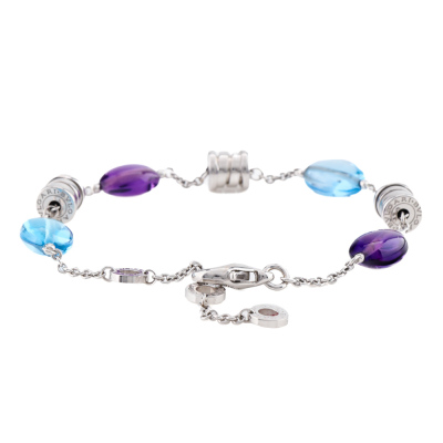 Bvlgari B.Zero 1 Lavalier bracelet with 2 Amethyst and 2 Blue Topaz oval beads of size 11 x 8mm - 11 x 8.7mm. 18ct white gold. Adjustable max length: 21cm. Weight: 13.0g. With Certificate #420663. (Pre-owned)