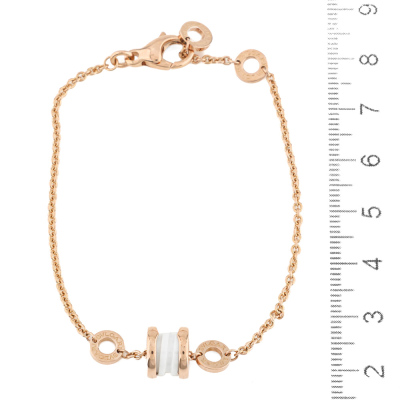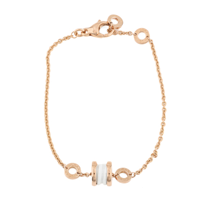 Bvlgari B.Zero1 bracelet, SM size with white Ceramic inlay. 18ct rose gold. Made in Italy. Adjustable length: 16.5cm - 18cm. Weight: 6.7g.