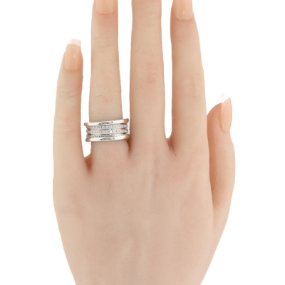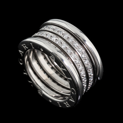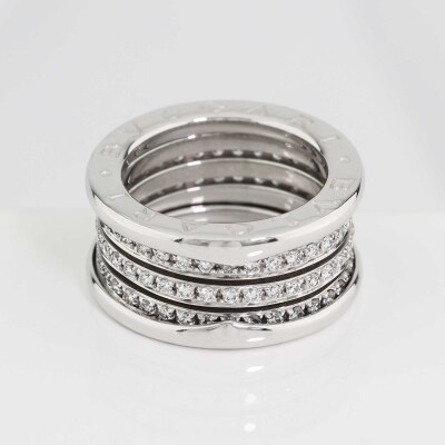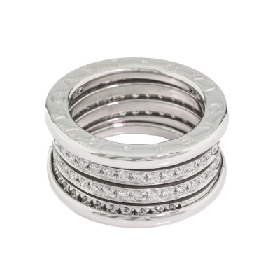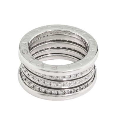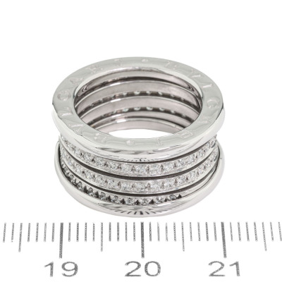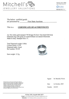 Bvlgari B.Zero1 Four-band full hoop Diamond ring with round Natural Diamonds totalling approximately 0.80ct (Estimated grading: F VS). 18ct white gold. Bvlgari stamped size 51, Measures as Australian Size J 1/2 - ring resizing is not recommended. Made in Italy. Weight: 11.9g. With Certificate #421653. (Pre-owned)