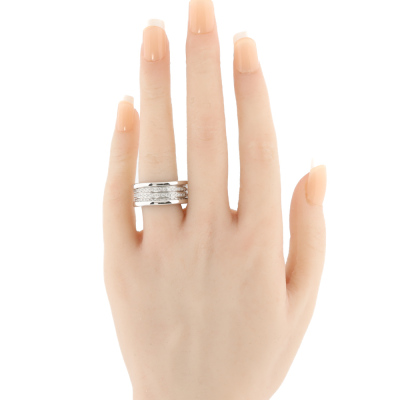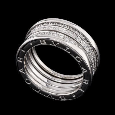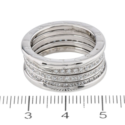 Bvlgari B.Zero1 three-band ring with full round Natural Diamonds totalling approximately 0.80ct (Estimated grading: F-G VS). 18ct white gold. Bvlgari stamped size 57. Width: 9.6mm. With Certificate #7446313235588953