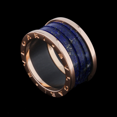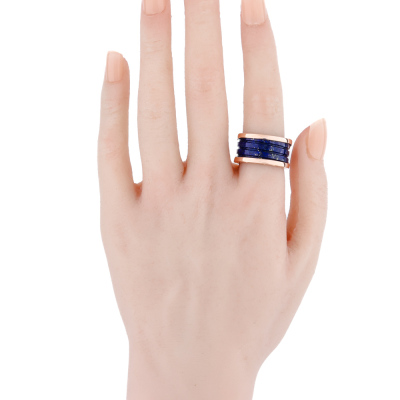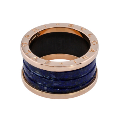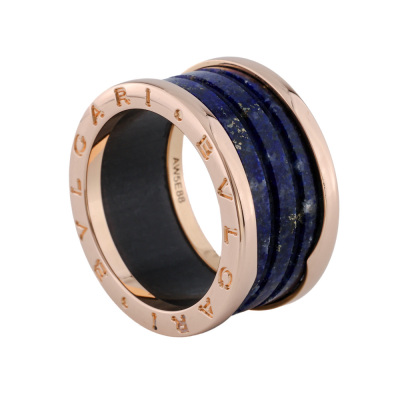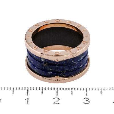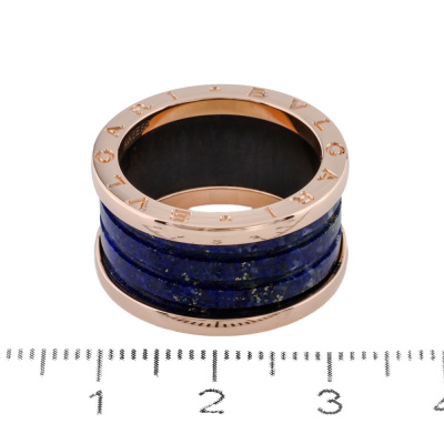 Bvlgari B.Zero1 four-band ring with Lapis lazuli. 18ct rose gold. Bvlgari stamped size 56, measures as Australian size: N 1/2 - ring resizing is not recommended. Width: 12mm. Made in Italy. Weight: 7.3g. (Pre-owned)