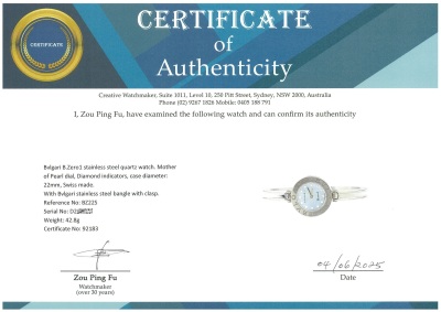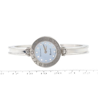 Bvlgari B.Zero1 stainless steel quartz ladies watch. Mother of Pearl dial, Diamond indicators, case diameter: 22mm, wrist size: 14.5cm, Swiss made. Ref# BZ22S. With Bvlgari stainless steel bangle with clasp. With Certificate of Authenticity, undated Bvlgari International Warranty booklet and Bvlgari box. No warranty applies. (Pre-owned)