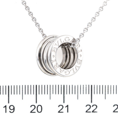 Bvlgari B.Zero1 necklace. Motif size: 1.5cm x 0.9cm. 18ct white gold with Bvlgari 40cm 18ct white gold chain. Made in Italy. Weight: 11.1g. (Pre-owned)