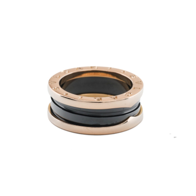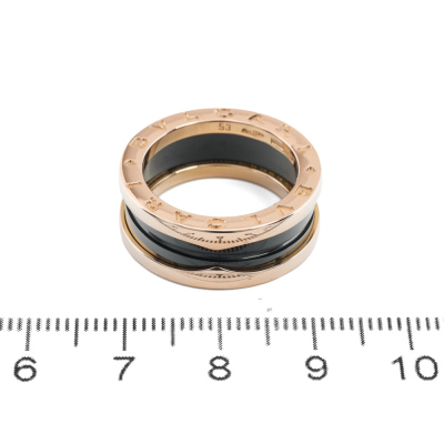 Bvlgari B.Zero1 ring. 18ct rose gold and black ceramic. Bvlgari size: 53, measures as Australian size: L 1/2 - ring resizing is not recommended. With Bvlgari box. Weight: 8.7g (Pre-owned)