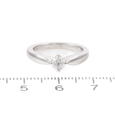 Bvlgari Dedicata a Venezia Torcello Diamond solitaire ring with a round Natural Diamond of 0.30ct (With copy of GIA summary report graded as D VVS1 #2111551799). Platinum - 950. Made in Italy. Ring size H. Band width: 2.8mm - 1.9mm. Weight: 4.9g. With Bvlgari box. (Pre-owned)