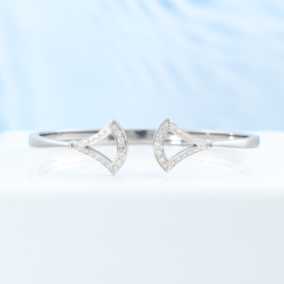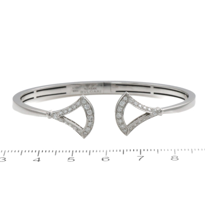 Bvlgari Diva Dream Diamond Openwork Bangle set with 36 round Natural Diamond totalling 0.42ct (Estimated grading: F VS). 18ct white gold. Bvlgari stamped size: S. Made in Italy. Weight: 15.6g. With Bvlgari Authenticity card dated 21.07.19 and Bvlgari box. (Pre-owned)
