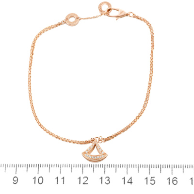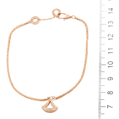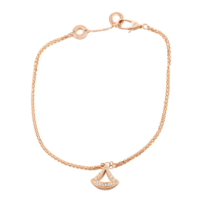 Bvlgari Divas' Dream bracelet with round Natural Diamonds totalling approximately 0.26ct. Fan shape motif size: 11.2mm x 10.6mm. 18ct rose gold. Maximum adjustable length: 17.5cm - 19.5cm. Made in Italy. Weight: 3.6g. With Bvlgari Authenticity Card dated: 31/08/2018. (Pre-owned)