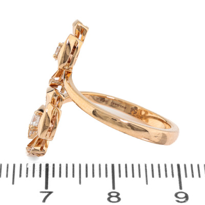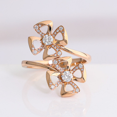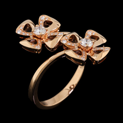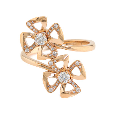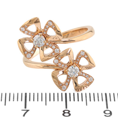 Bvlgari Fiorever Diamond ring with round Natural Diamonds totalling approximately 0.30ct (Estimated grading: F-G VS). 18ct rose gold. Stamped size 54, measures as Australian size: M3/4 - ring resizing is not recommended. Made in Italy. Weight: 5.5g. With Bvlgari box. With Certificate #9317775363343748. (Pre-owned)